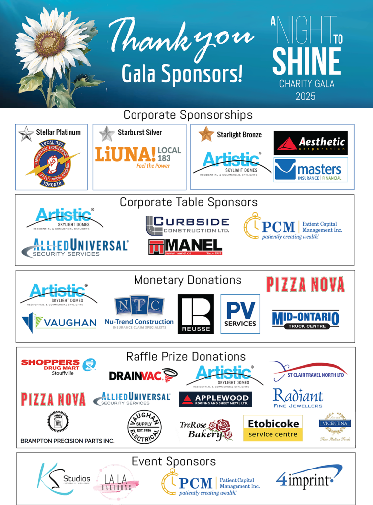 We were honored to welcome Mayor Del Duca, Deputy Mayor Jackson, Councillor Rosati, MP Sorbara, and MPP Tibollo, whose presence and generous contributions—including support from the Spirit of Generosity Fund—truly reflected the heart of our theme. Their dedication inspires us all to keep shining our light and making a difference together!